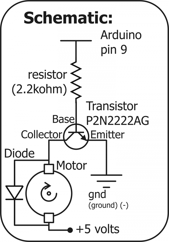 Şimdi biraz da motorun dönüşüyle uğraşacağız. Bunun için transistöre ihtiyacımız var çünkü transistorler Arduino’nun yapabildiğinden daha büyük miktarlarda akım dönüştürebiliyor. Transistor kullandığınızda maximum seviyesine bakarak kullanımınız için yeterince uygun olup olmadığına karar verin. Bu devre için 40V ve 200 mA'lık transistor işimizi görür. Oyuncak moturumuz için yeter de artar.