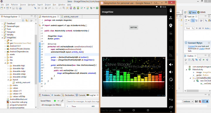 XML File düzenlemesi yapıldıktan sonra artık kod yazma adımını geçilebilir. Kod yazmak için Seekbar.java sınıfı açılır. Ve aşağıdaşi görseldeki gibi kodlar yazılmalıdır.